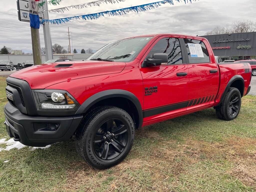 PLEASE, BRING YOUR TRADE AND TEST DRIVE THIS USED FLAME RED CLEARCOAT 2022 RAM 1500 CLASSIC WARLOCK EDITION CREW CAB 4X4 PICKUP TRUCK THAT IS EQUIPPED FOR YOUR COMFORT AND CONVENIENCE AND HAS ADVANCED SAFETY AND CONNECTIVITY OPTIONS PLUS A 3.6L V6 GASOLINE ENGINE. STOP BY TODAY AND DISCOVER MORE. FREE CARFAX REPORT.